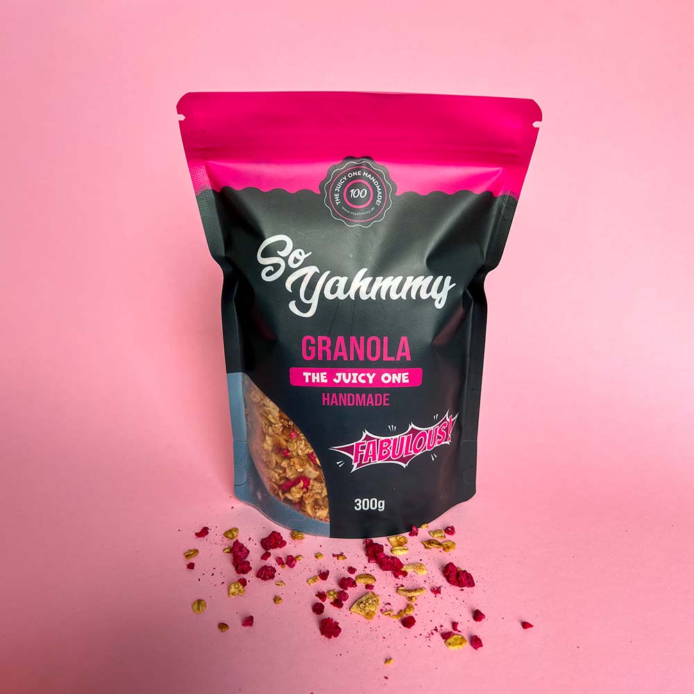 Mit "THE JUICY ONE" präsentieren wir dir unsere perfekte Alternative für einen fruchtigen Morgen. Gefriergetrocknete Himbeeren, kombiniert mit unserem handgemachten Granola, erschaffen einen perfekten Mix aus Crunch-Erlebnis und saftigem Highlight.