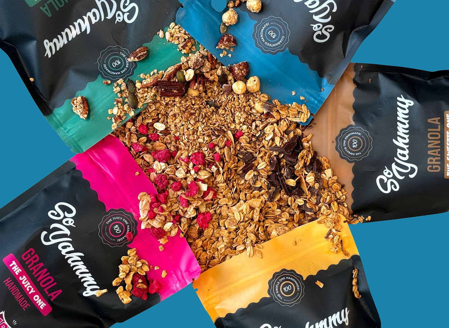 Erlebe eine echte Geschmacksexplosion und hol dir die Energie, die du für deinen Alltag benötigst. Wir sind So Yahmmy, das leckerste Granola überhaupt. Wir verwenden ausschließlich Produkte, die von Natur aus Zucker enthalten - Also keinen raffinierten Zucker. Das macht uns neben unserem selbst gemachten Mandelmus zum absoluten Gamechanger. Überzeuge dich selbst und probiere es direkt! NO SUGAR ADDED!
